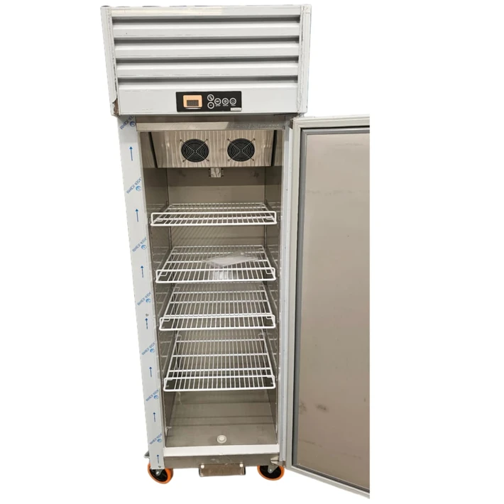 This large, upright cabinet features a vertically aligned door that swings open for easy access to the storage space within. Equipped with automatic defrost, a cooling system that maintains a consistent and adjustable temperature range, the stored items remain fresh and safe to consume. The single door design includes an automatic door reminder, and minimises temperature fluctuations when the door is opened, helping to conserve energy and maintain food quality.